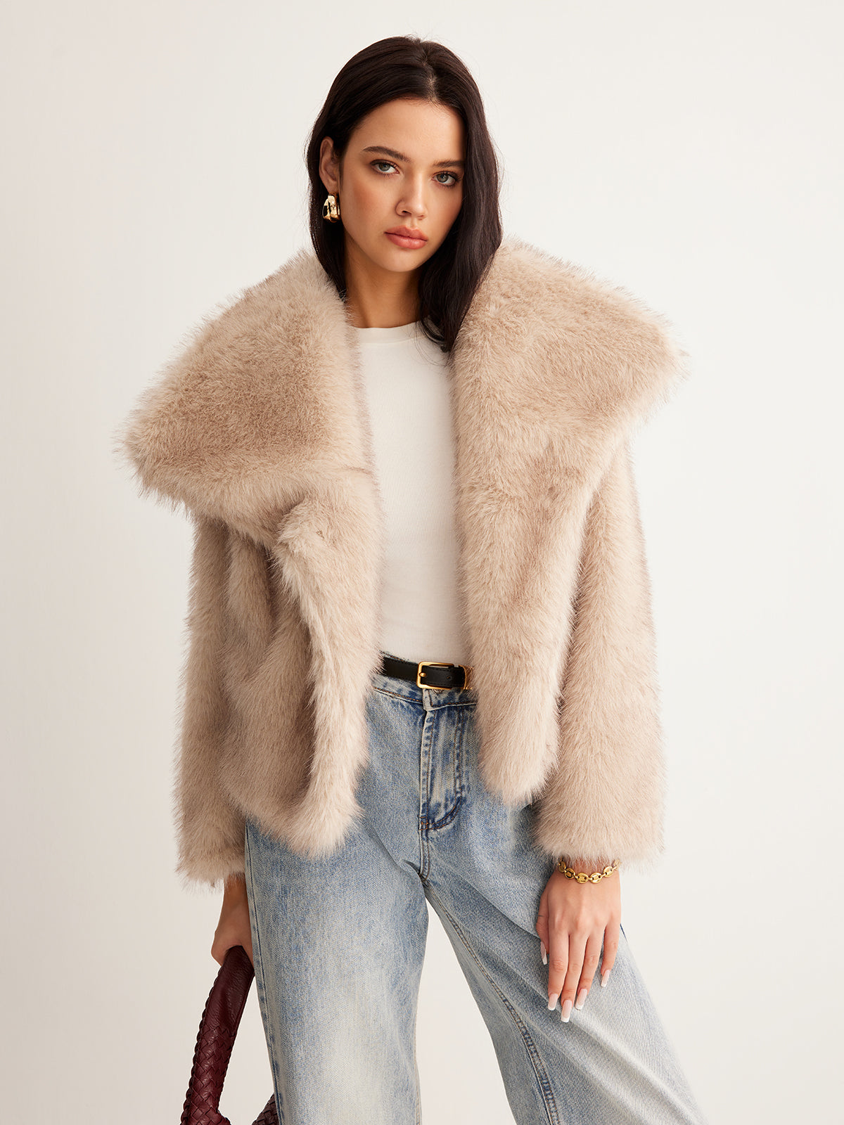 Вълнено палто с копчета и изкуствена кожа