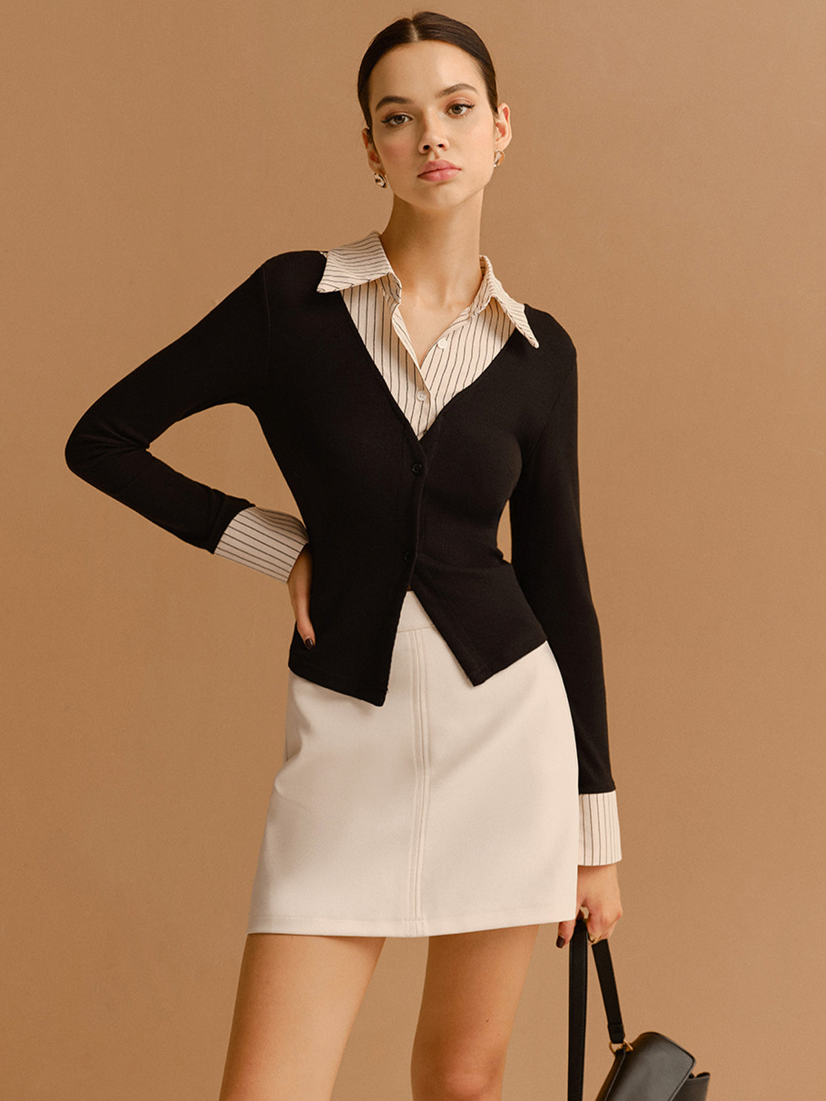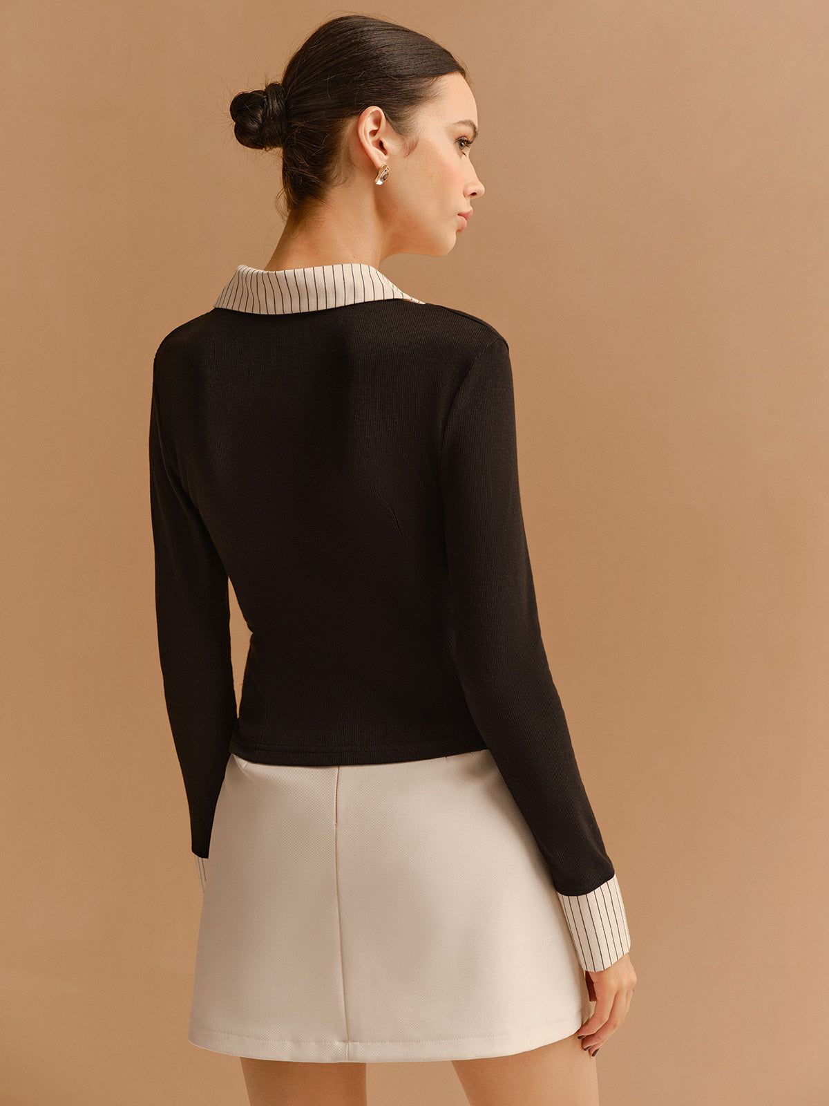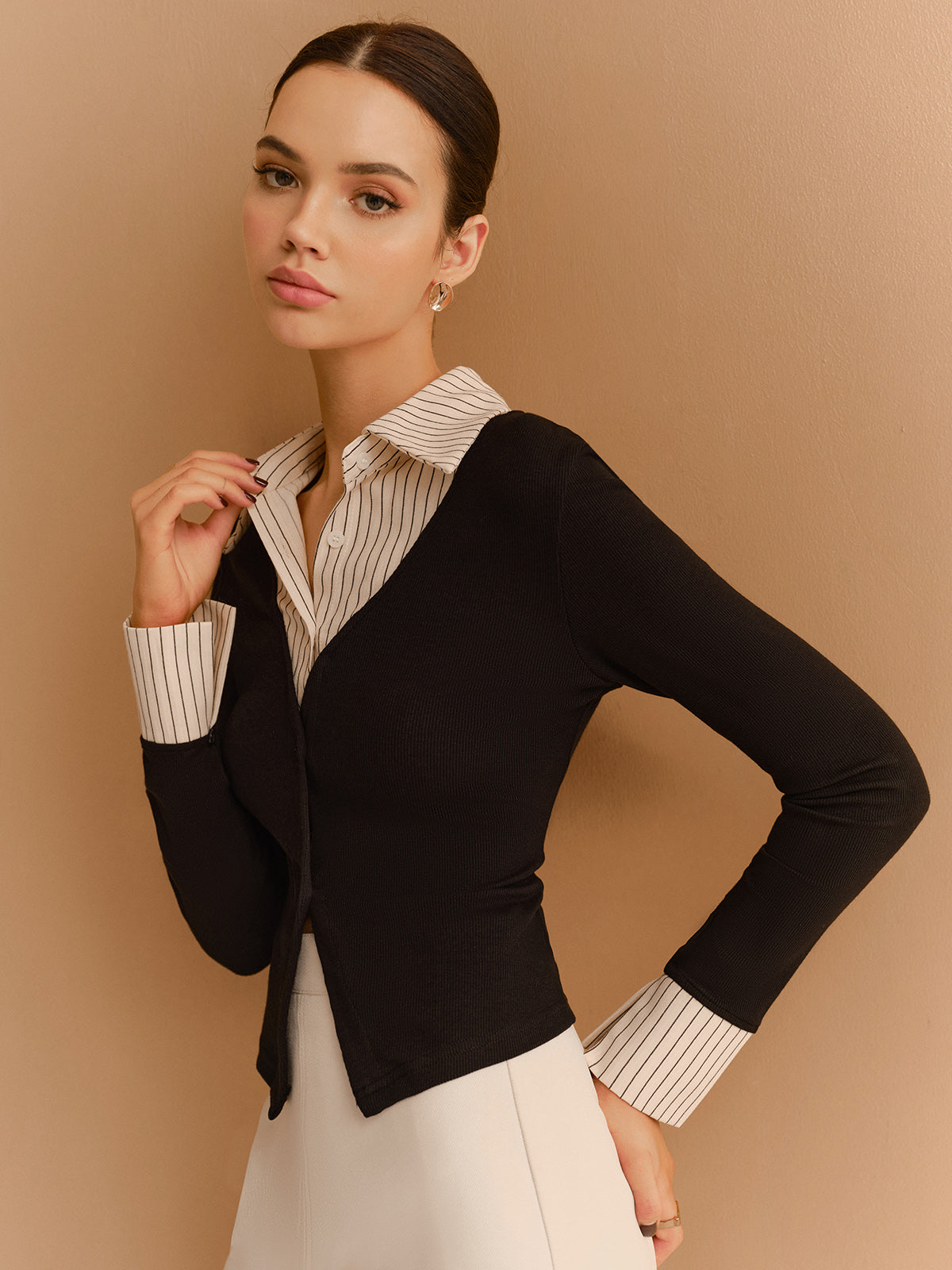 Многофункционална блуза 2 в 1 с копчета и цепка за яка за шик и удобен стил