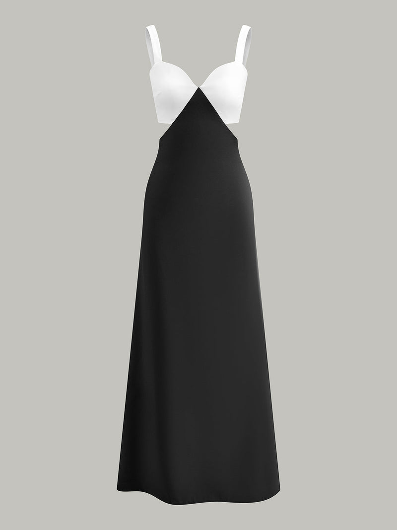 Şık Renk Bloklu Kesik Bel Abiye Elbisesi