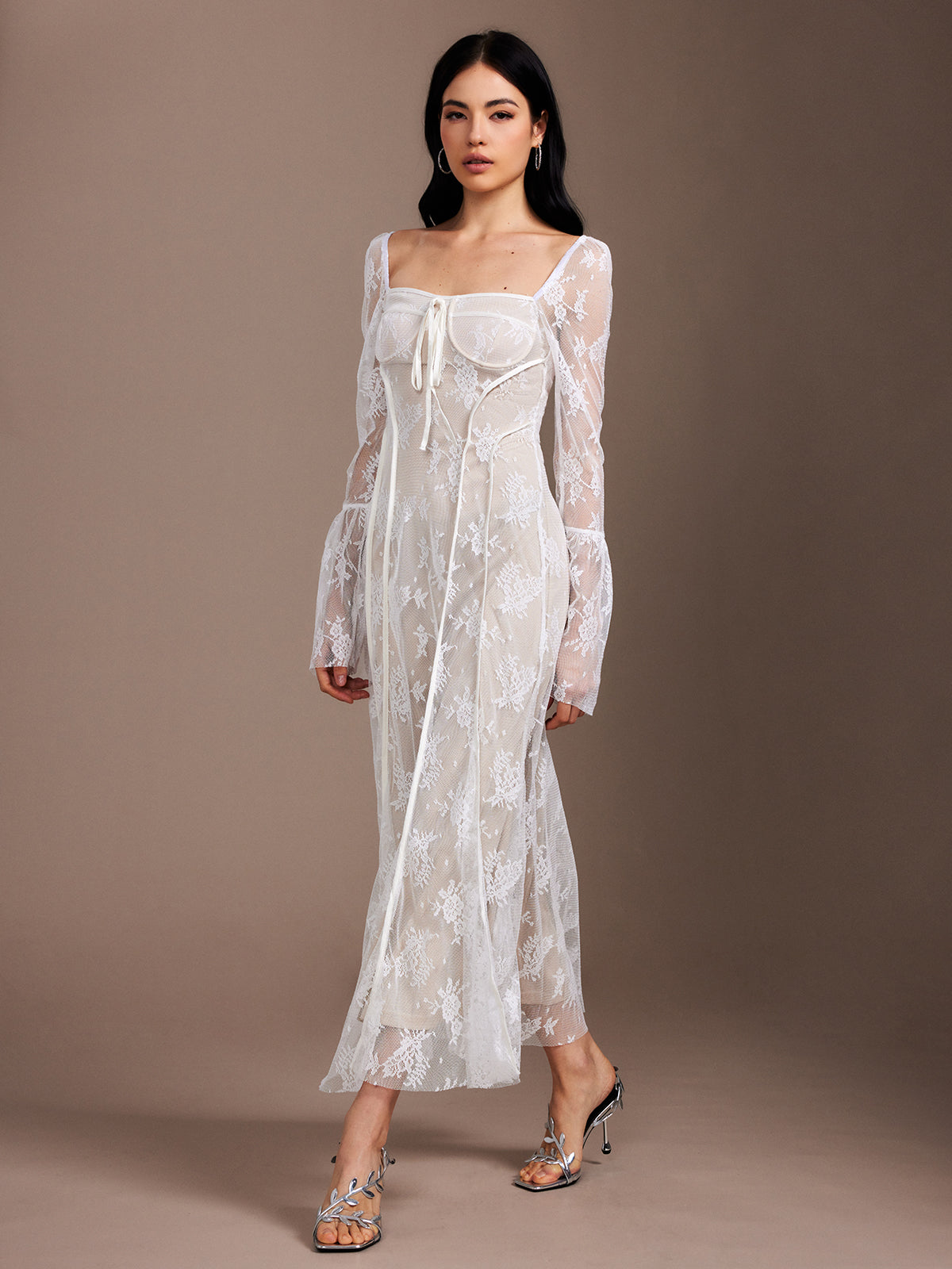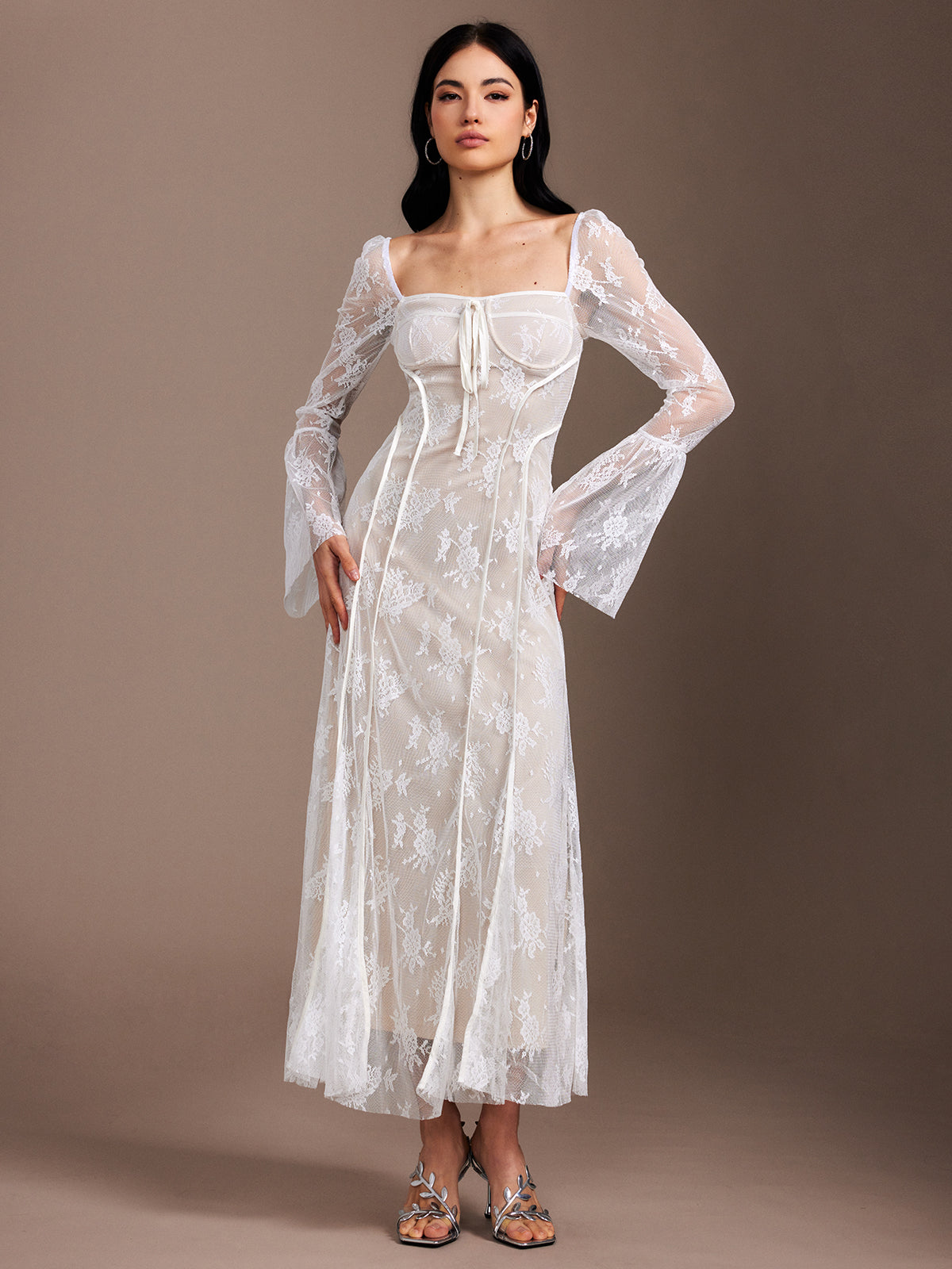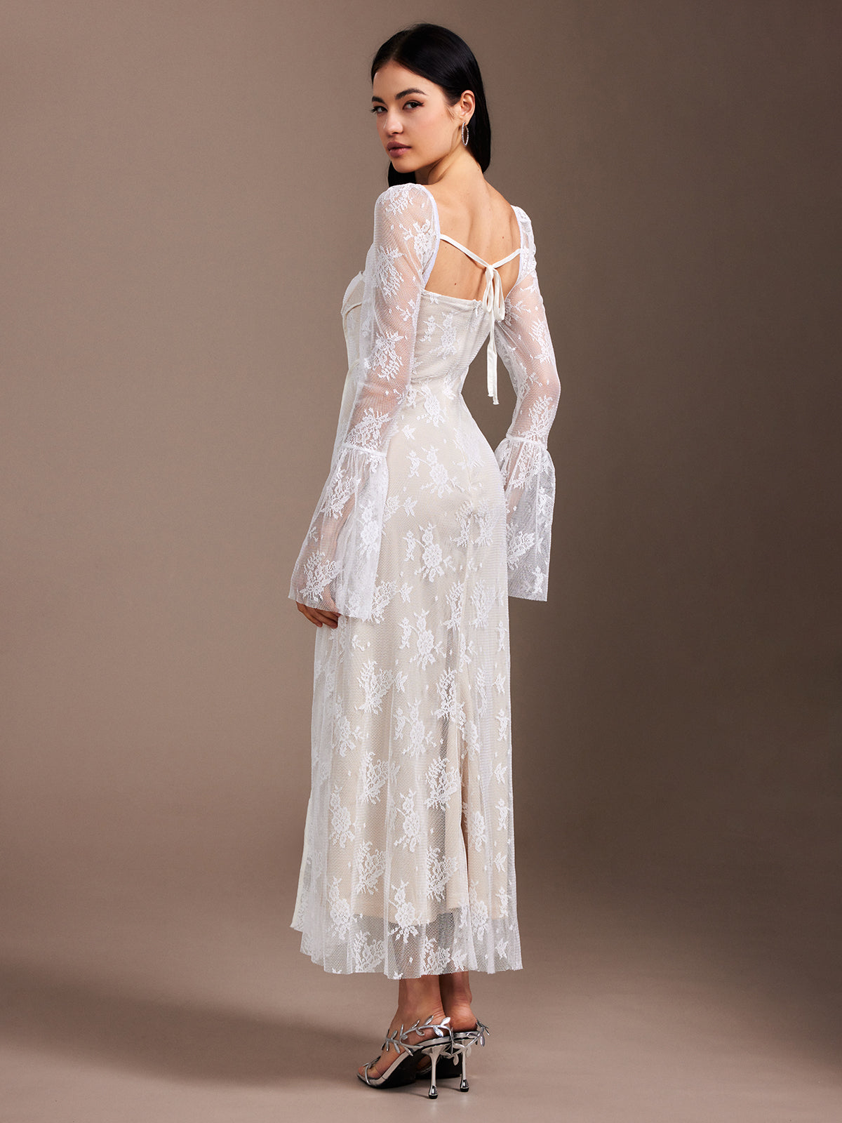 Dantel Fırfırlı Dökümlü Abiye Elbise