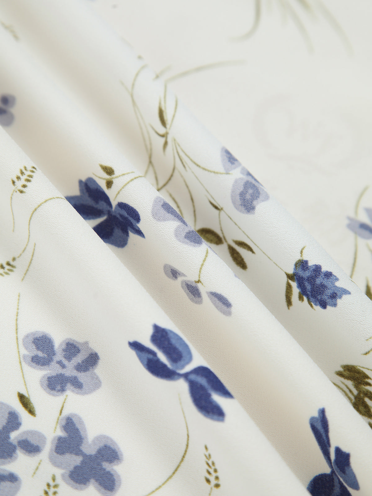 Çiçek Desenli Büzgülü Sırt Fırfırlı Düğümlü Kısa Elbise