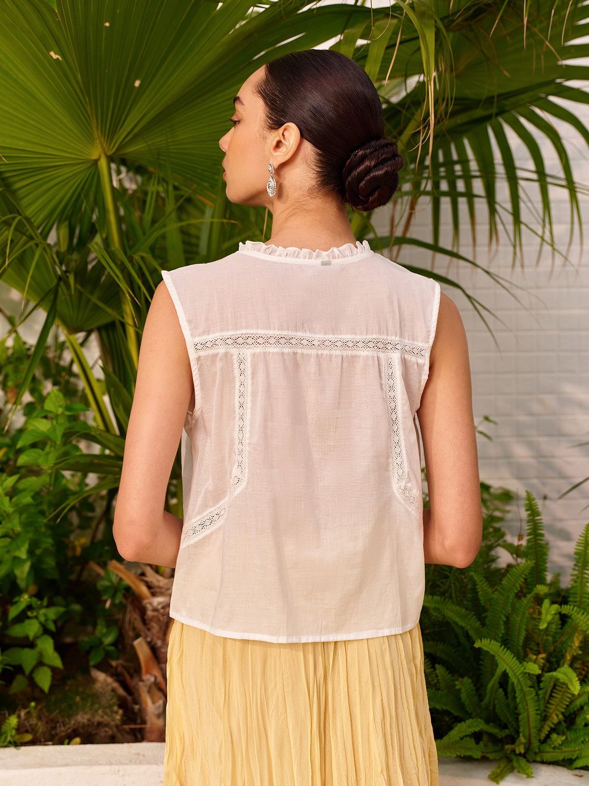Gardırobunuzu konfor, stil ve günlük kullanım için tasarlanmış bu şık, kolsuz, işlemeli bluz ile yenileyin.