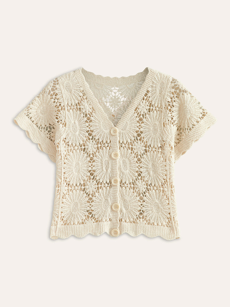 Şık Kroşe Çiçekli Düğmeli Hırka