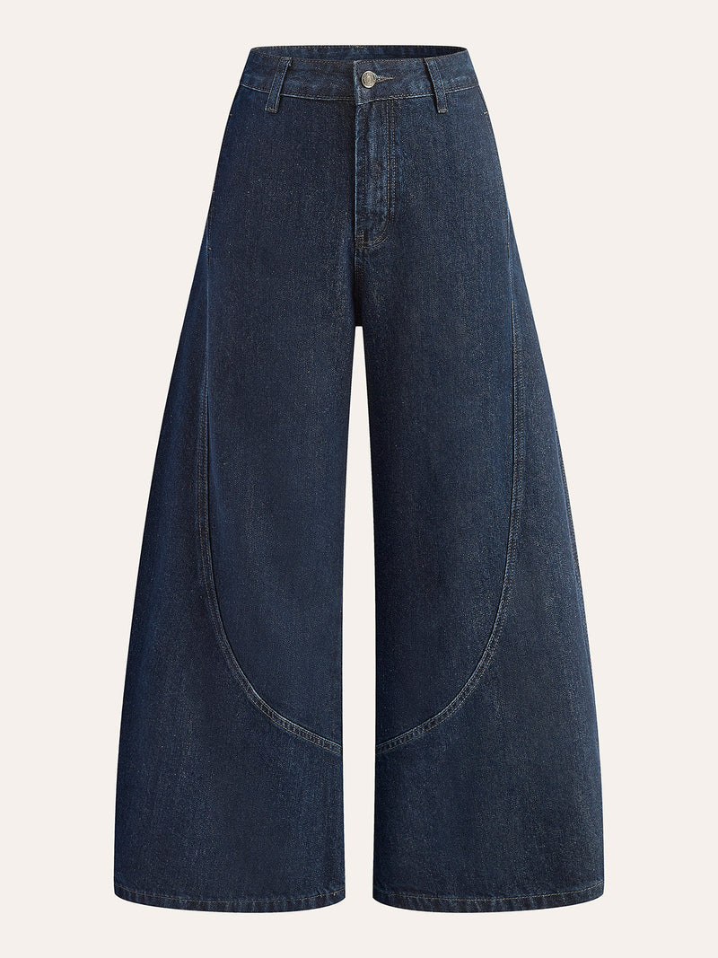 Şık Pamuklu Geniş Paça Orta Bel Jeanler