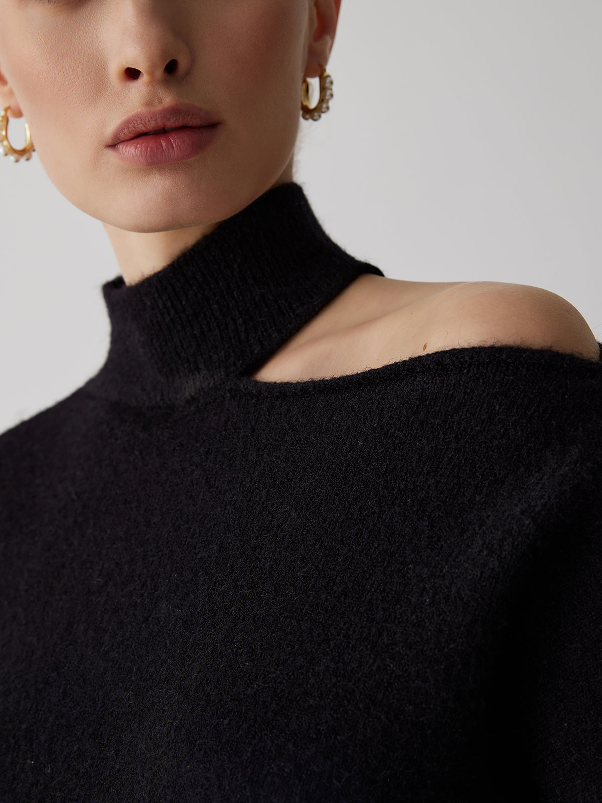 Omuzları Açık Balıkçı Yaka Uzun Kollu Kazak