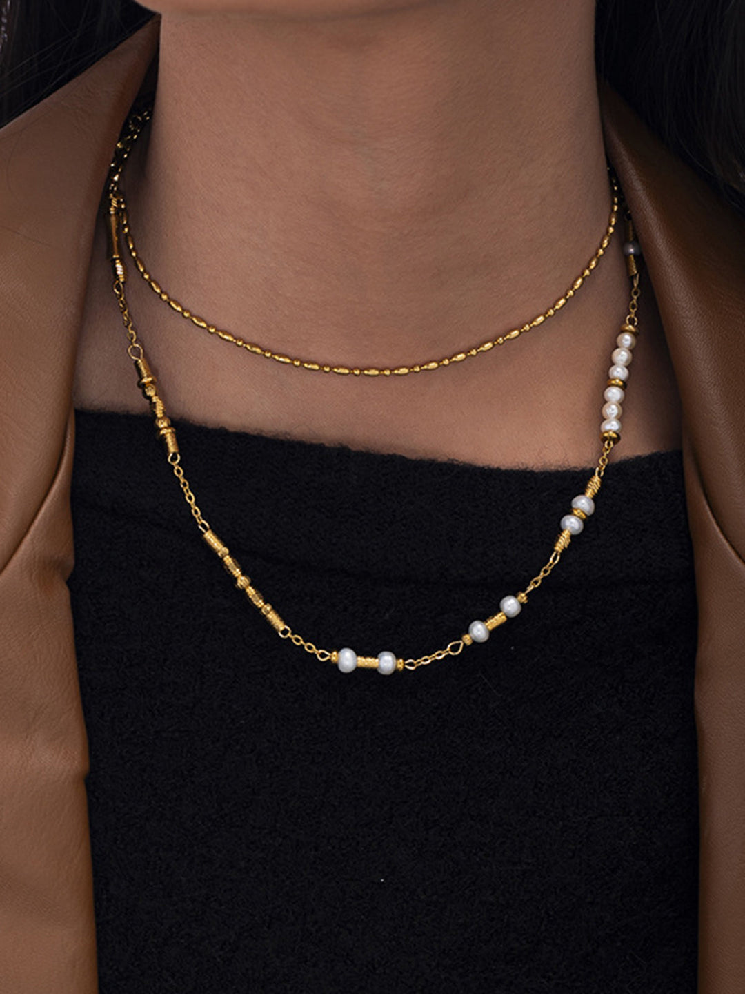 İnci ve Altın Boncuklu Choker Kolye