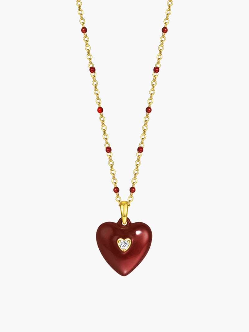 Vintage Kırmızı Kalp Kolye