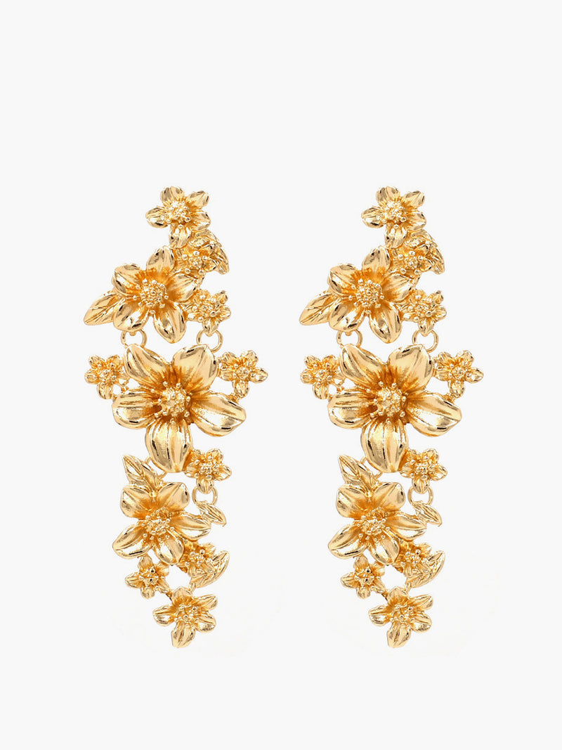 Şık Altın Çiçekli Damla Küpeler, Göz Alıcı Taş Tasarımı ile
