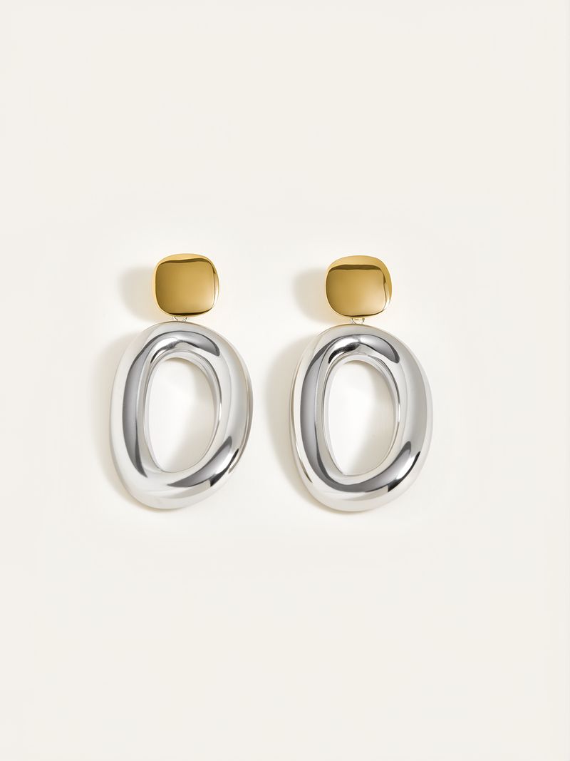 İki Renkli Pürüzsüz Oval Sarkan Küpe