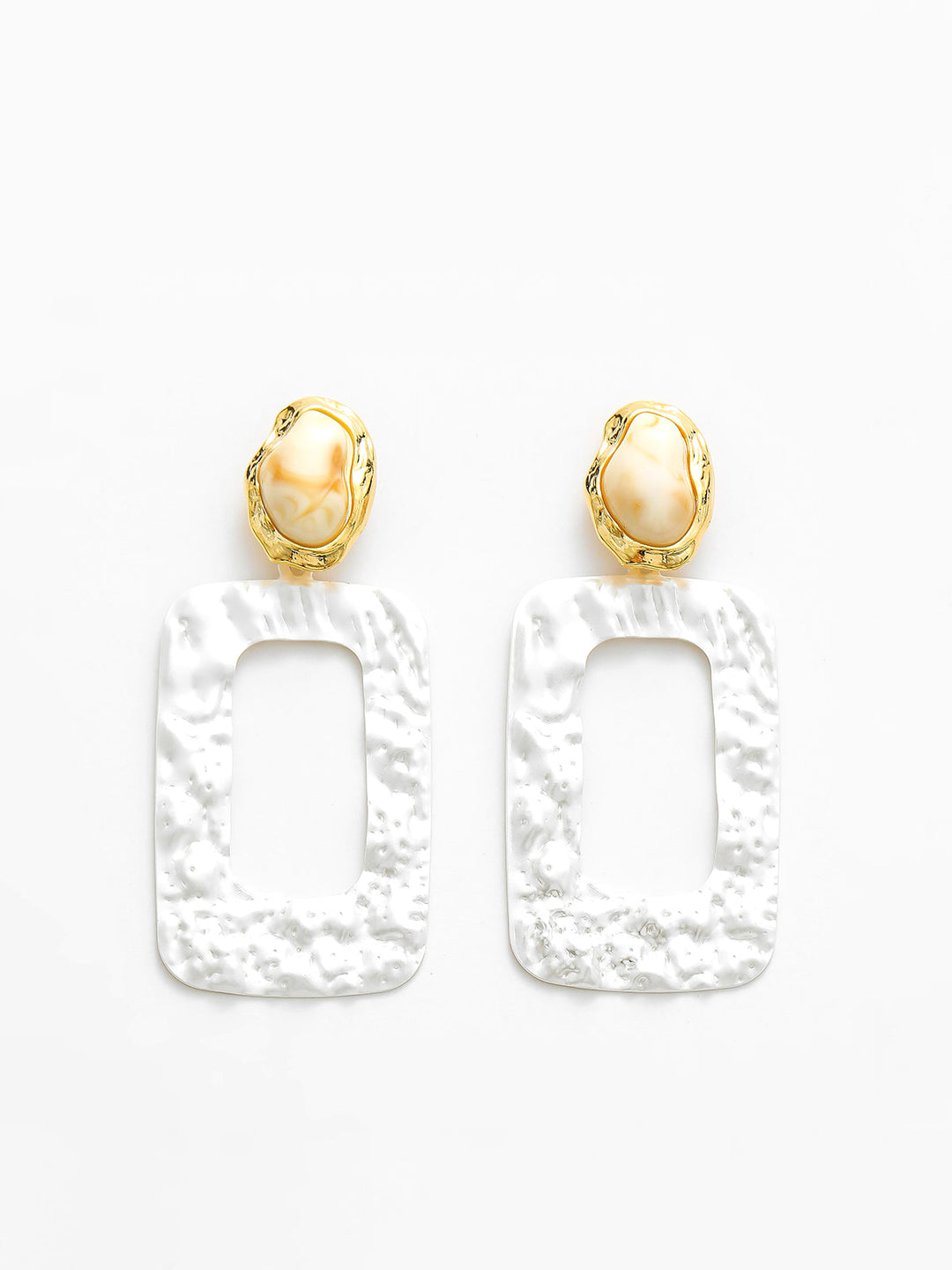 Taşlı Kare Pileli Çerçeve Damla Küpe