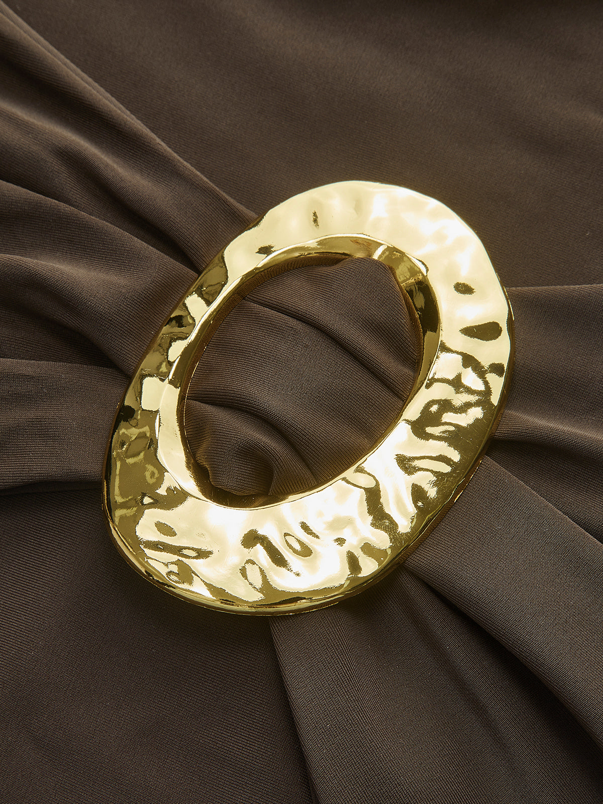 Şık Oval Yüzük Bant Bikini Takımı ve Akışkan Drapeli Etek