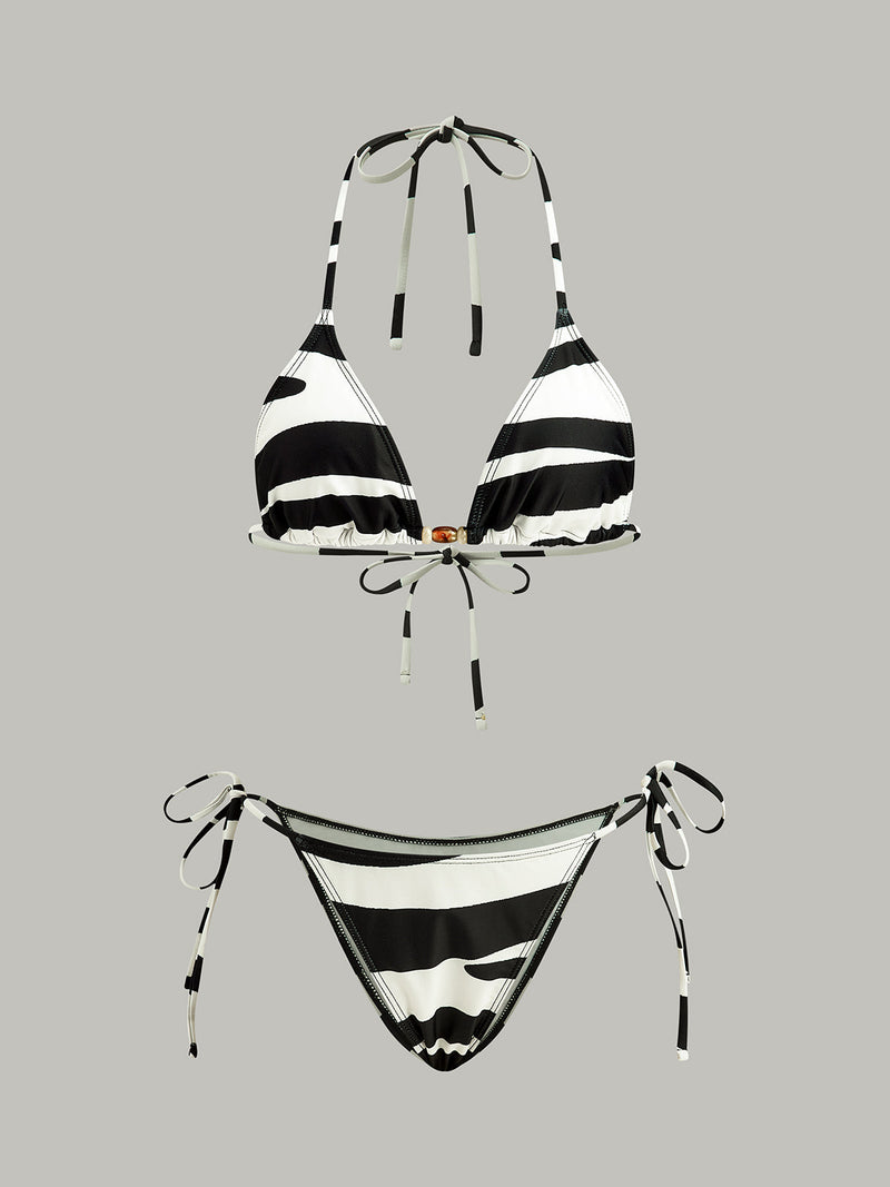 Renkli Üçgen Desenli Çizgili Bikini Takımı