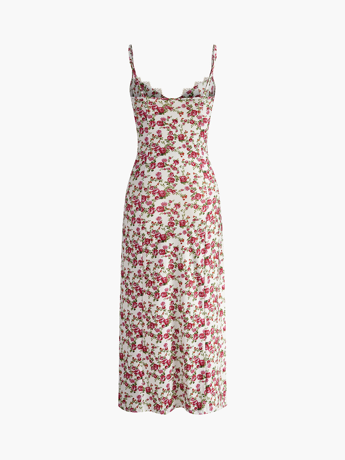 Çiçekli Yırtmaçlı Kalp Cami Elbise
