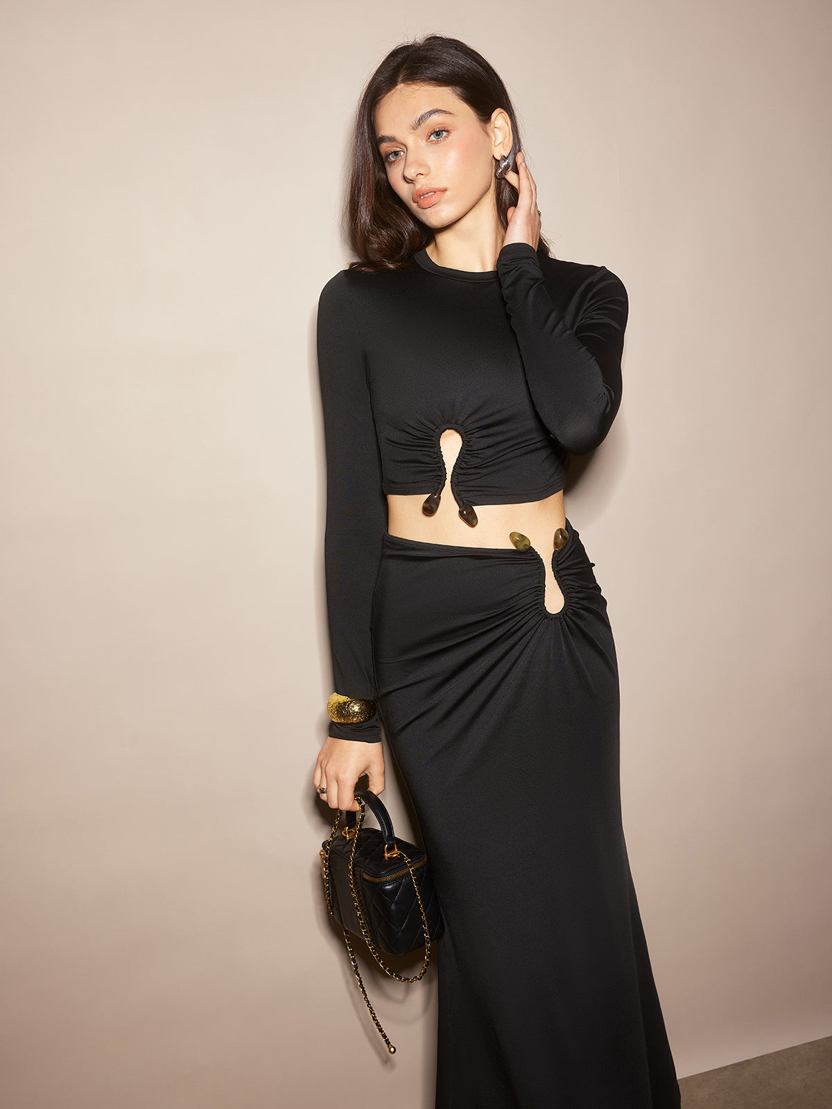 Şık U-Halka Kesik Midi Etek Takımı