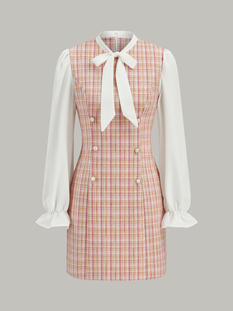 Yay Göğüslü Panel Detaylı Mini Elbise