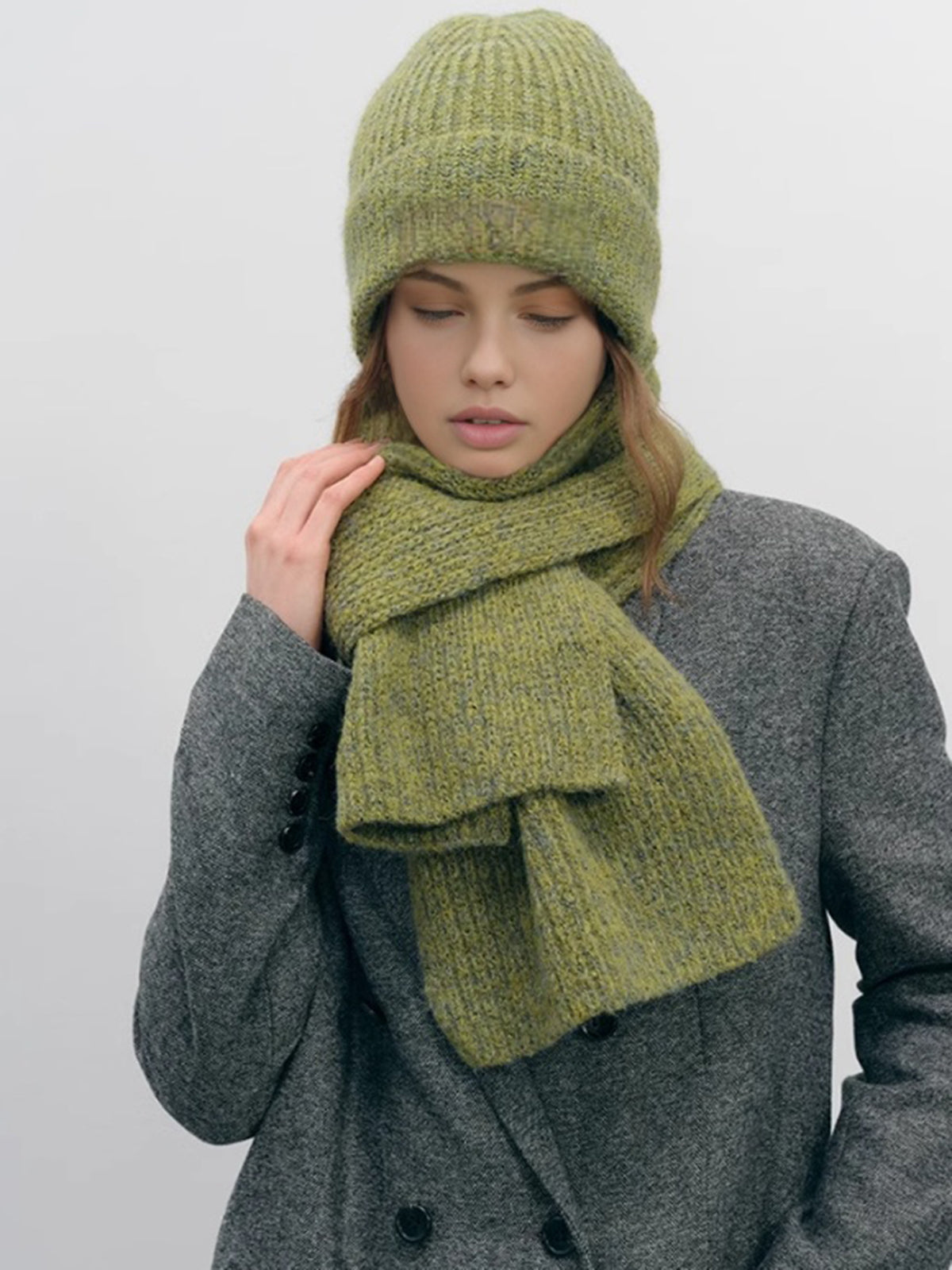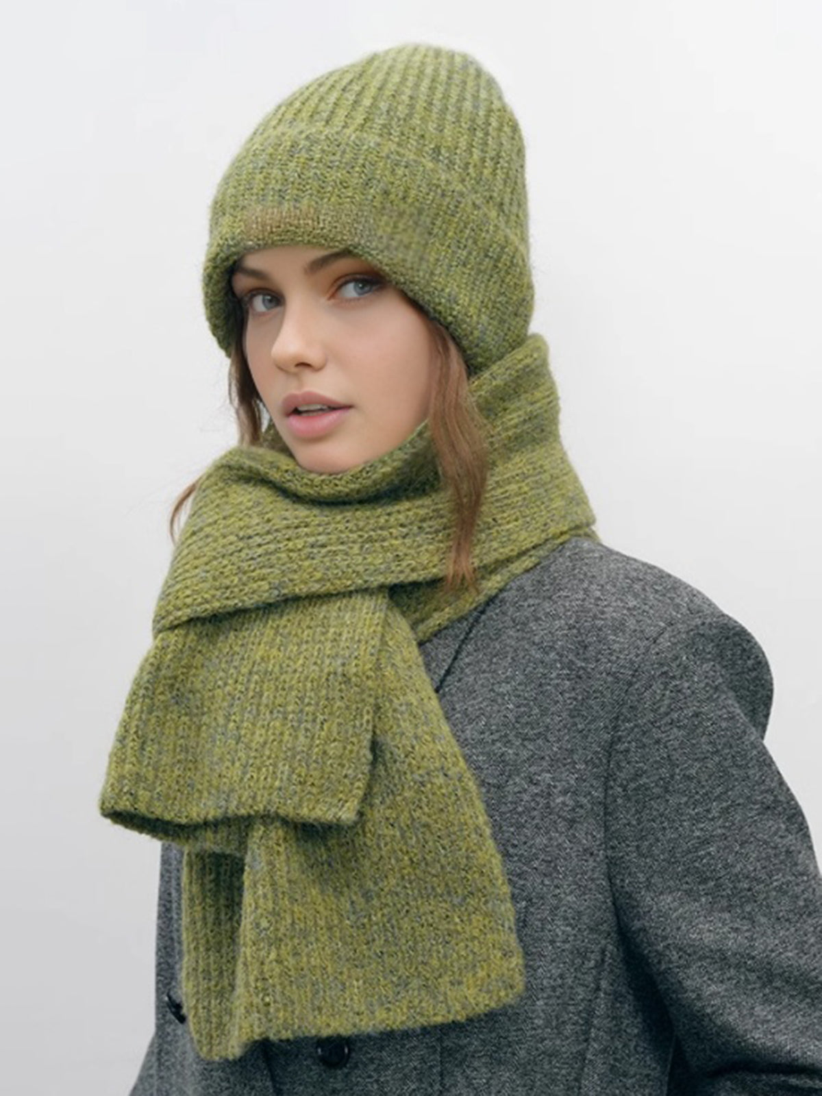 Düz Sıcak Örgü Şapka ve Atkı