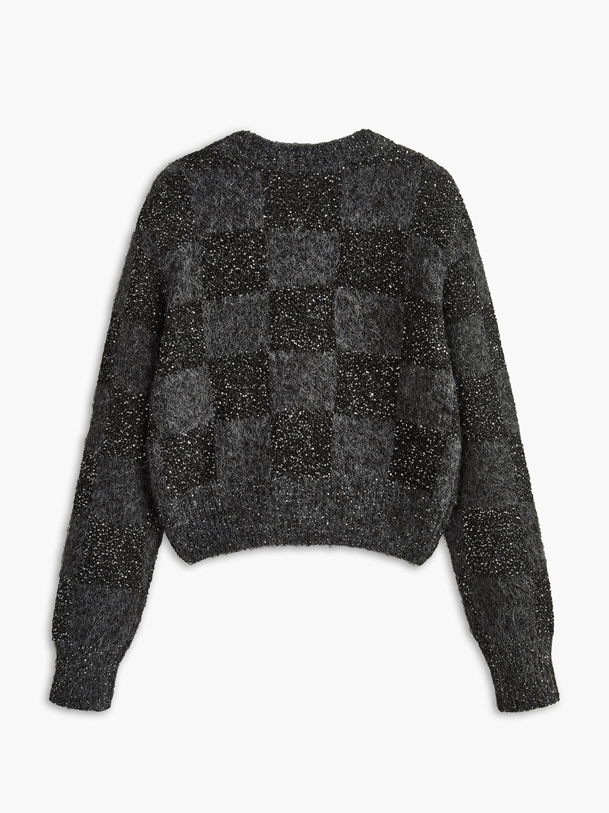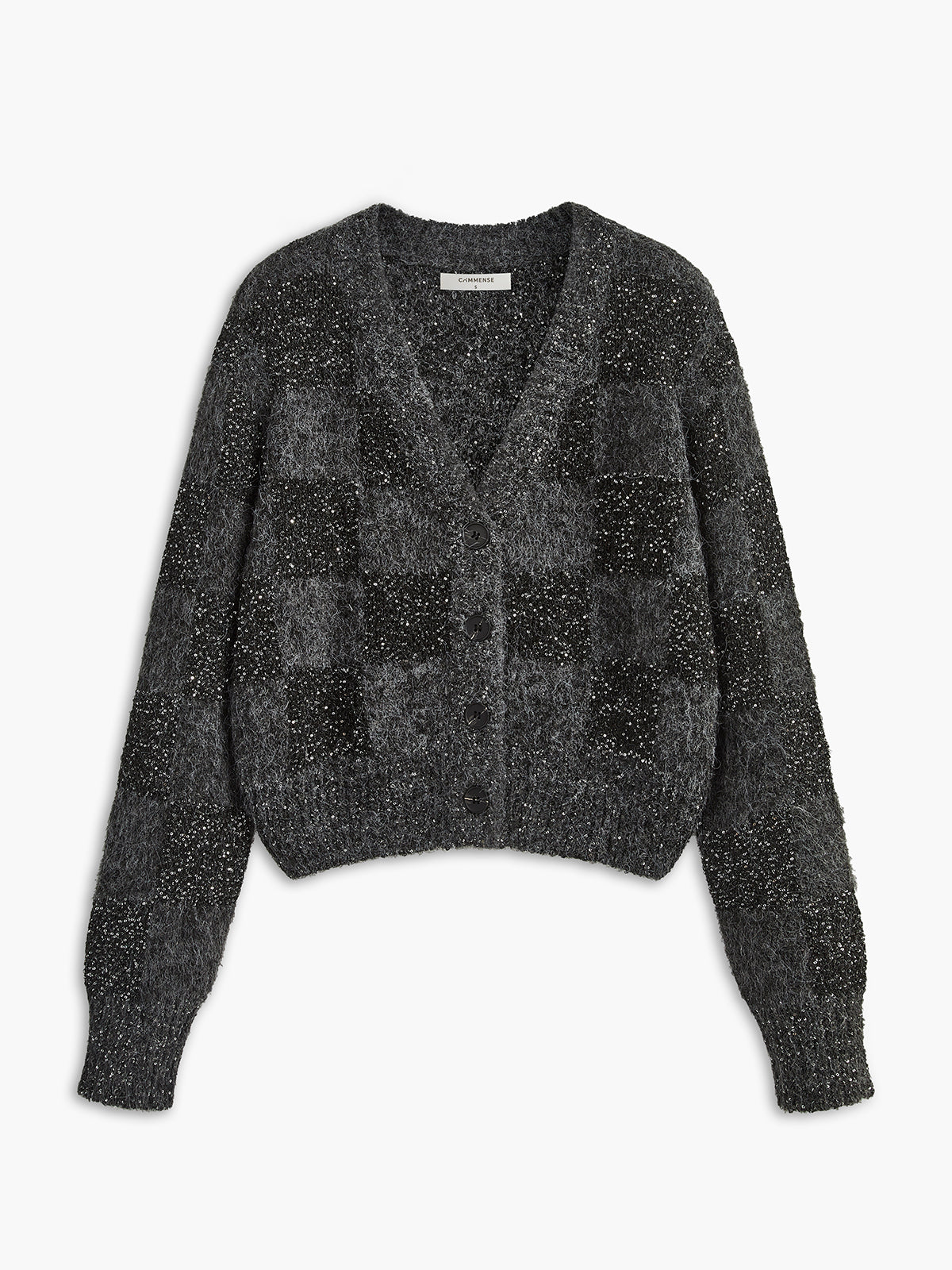 Geometrik Desenli Sıralı Payetli Triko Dış Giyim