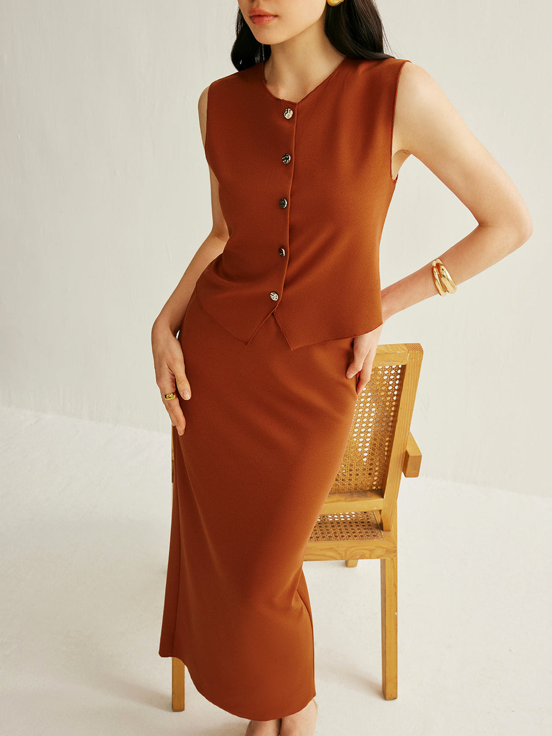 Şık Düğme Detaylı Kolsuz Yelek