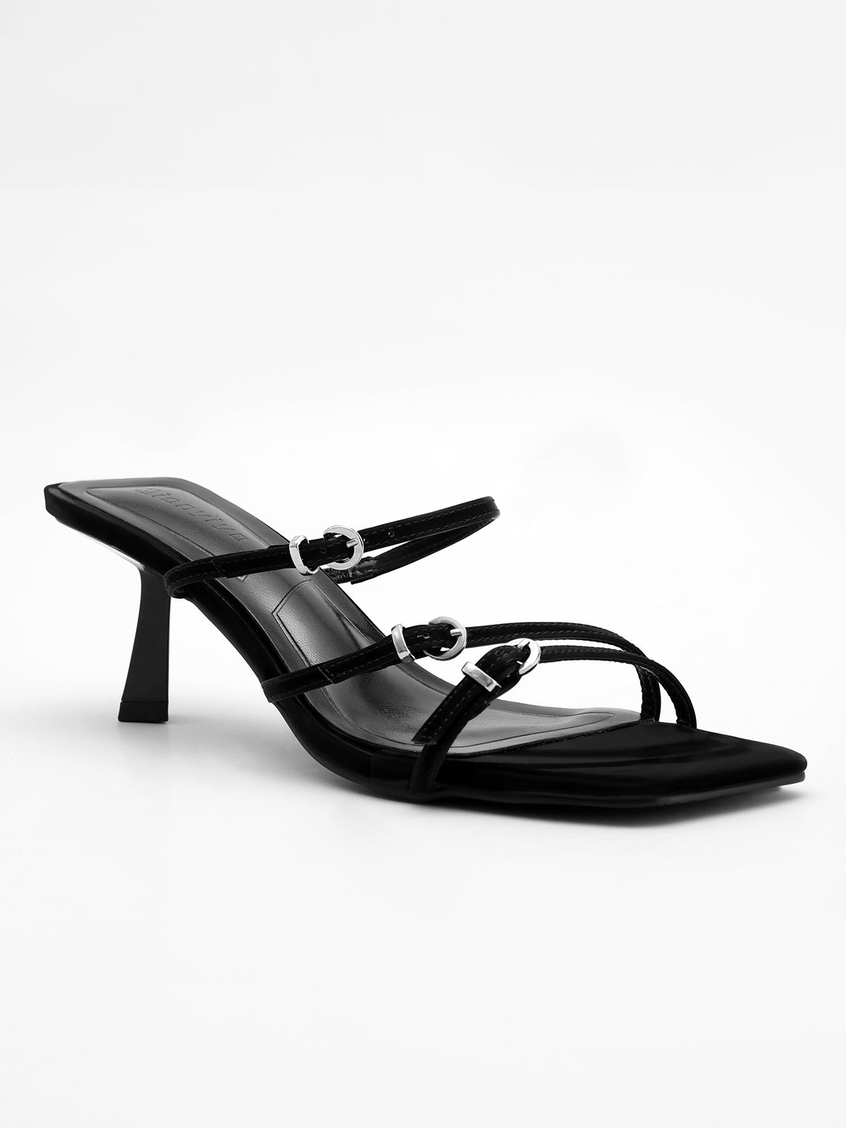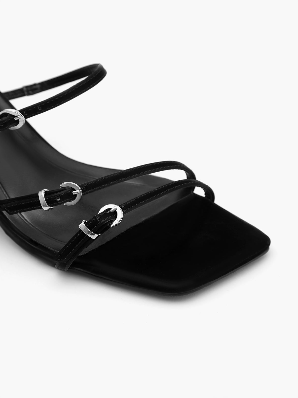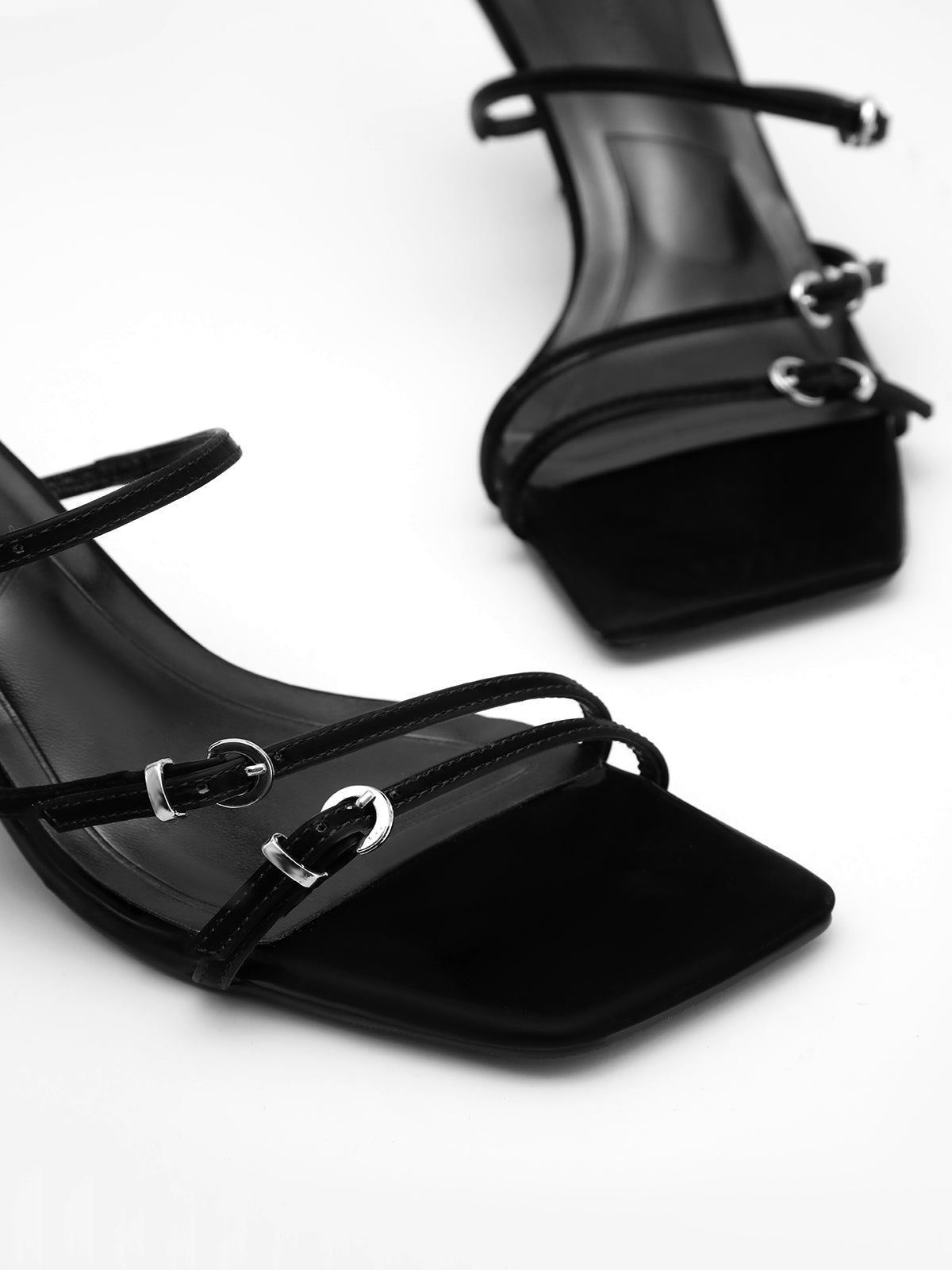 Kare Burunlu Bantlı Topuklu Sandaletler