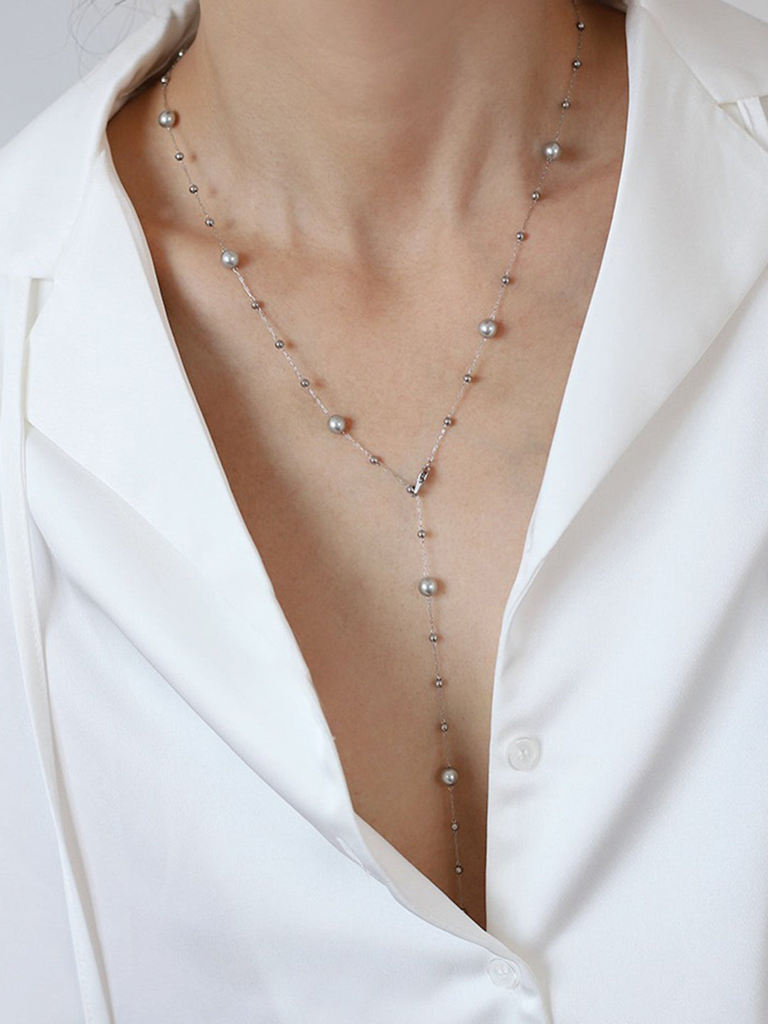 Geometrik Zincir Boncuklu Y-Şekli Kolye