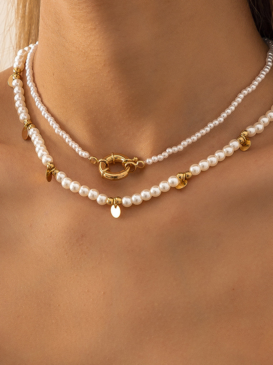 2 Adet İnci Boncuklu Altın Halka Kolye