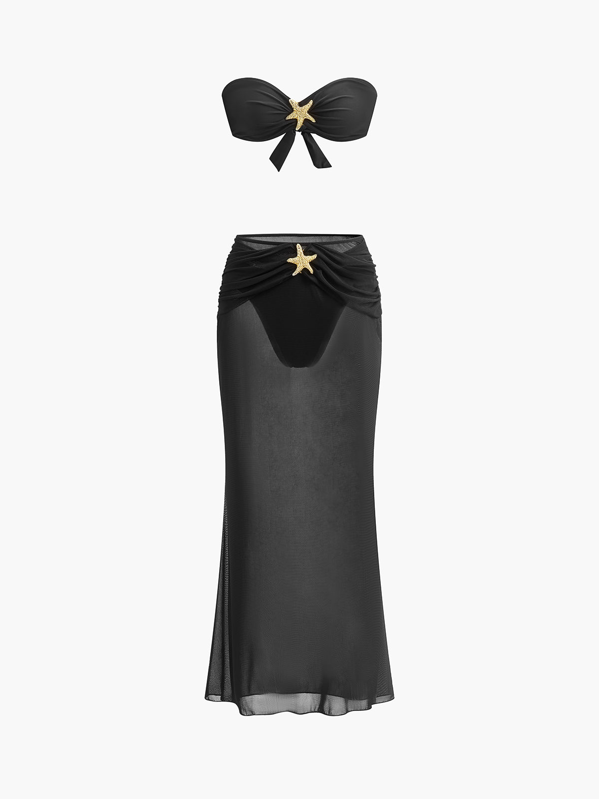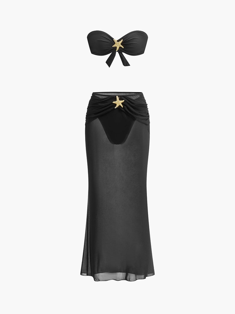Göz alıcı Deniz Yıldızı Süslemeli Bandeau Bikini ve Zarif File Etek