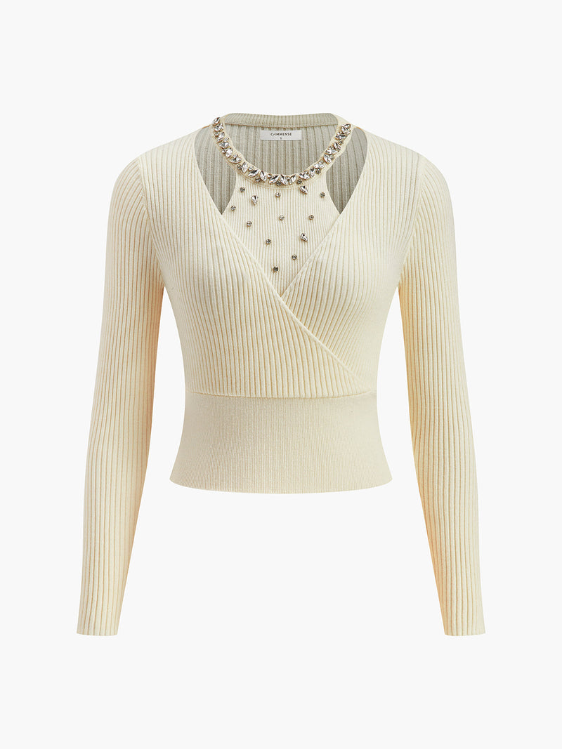 Şık Görünüm İçin 2'si 1 Arada Boncuklu Bel Kısmı Daralan Kazak