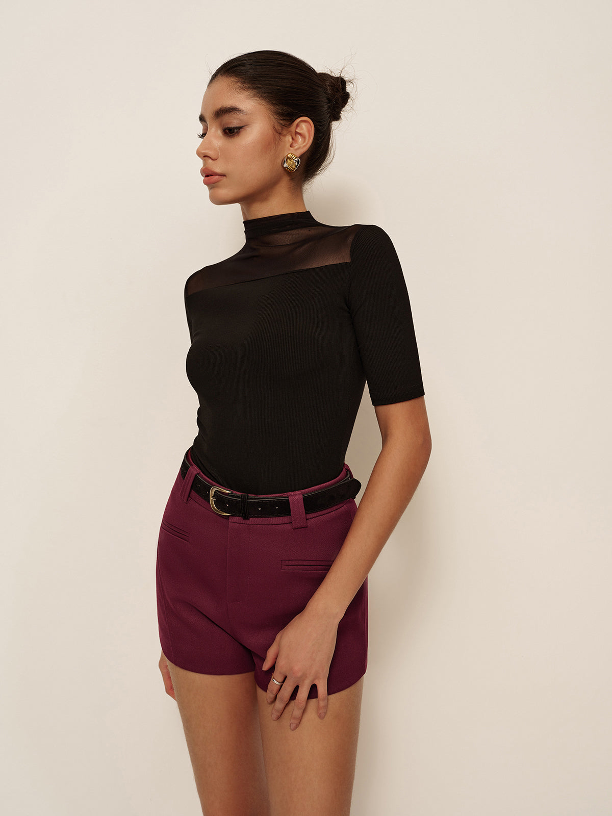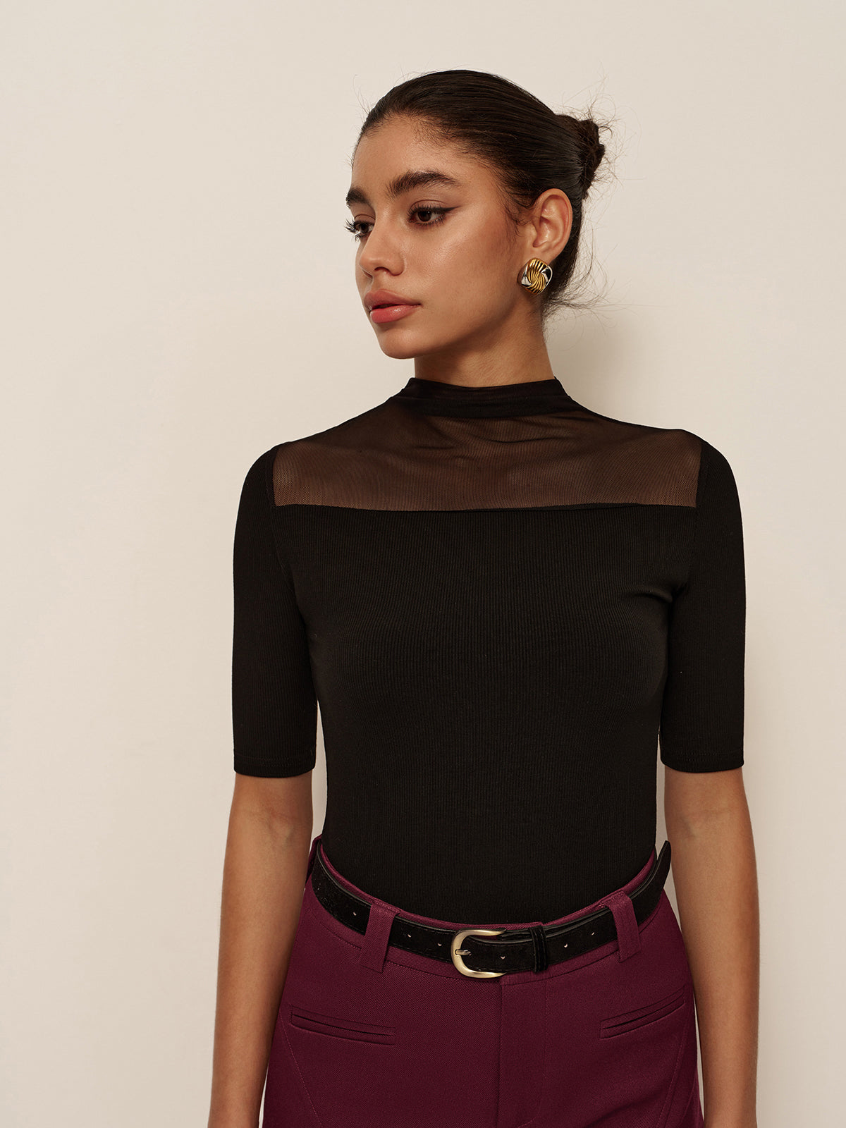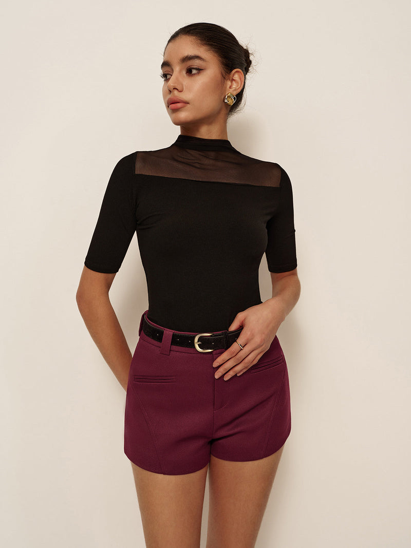 👗 Eşsiz Tasarım: Şeffaf tasarımı ve kısa kollu mock neck ile her türlü rahat etkinlik için mükemmel bir şık ve gündelik görünüm kazandırır.