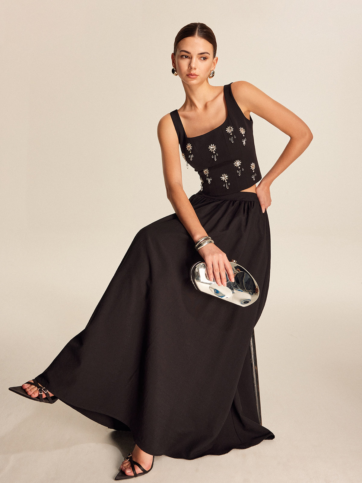 Şık Tasarım: Taşlı desen, boş zamanlarda veya partilerde mükemmel bir parıltı katıyor.