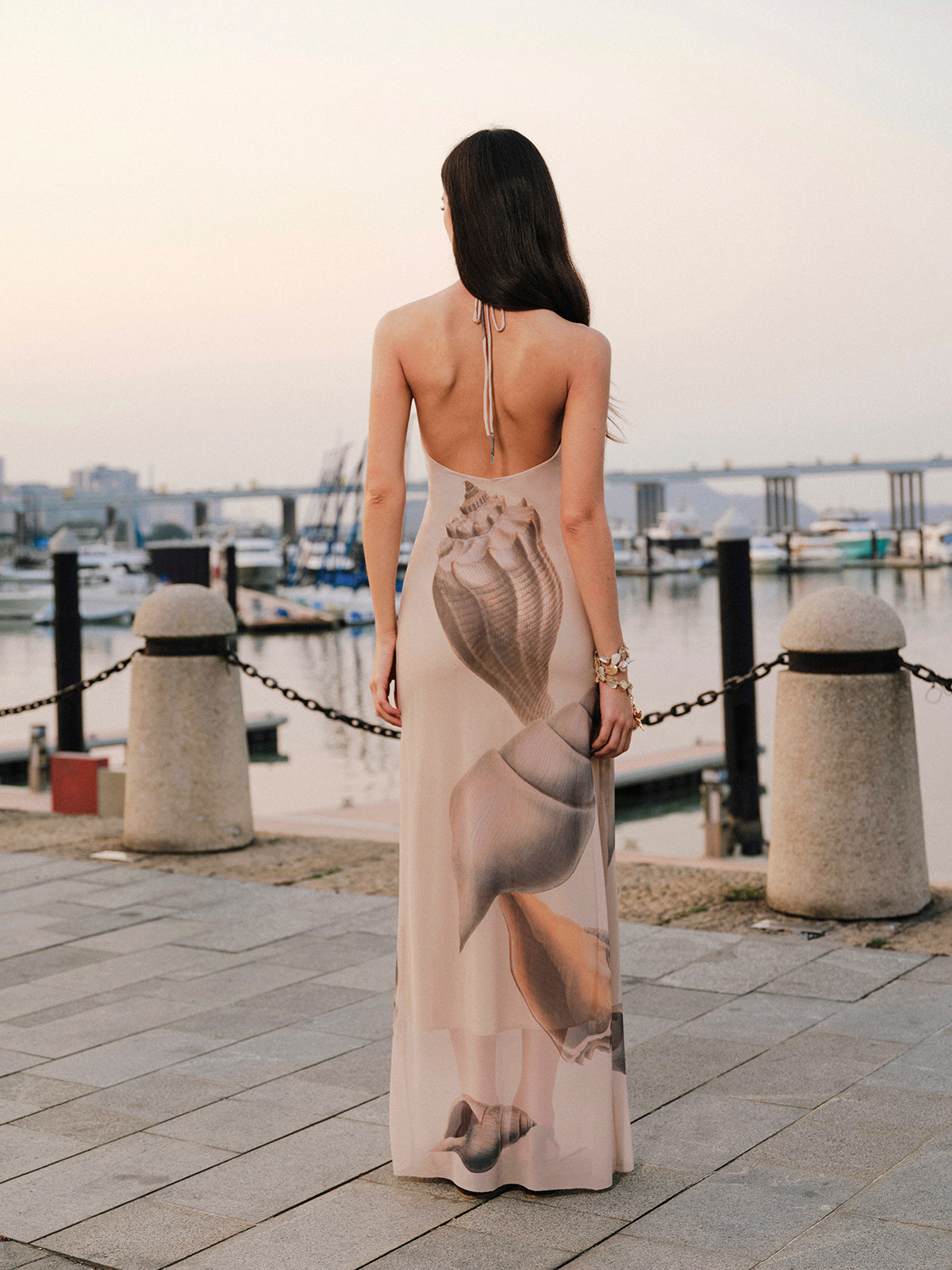 Şık Sırt Açık Halter Yaka File Elbise