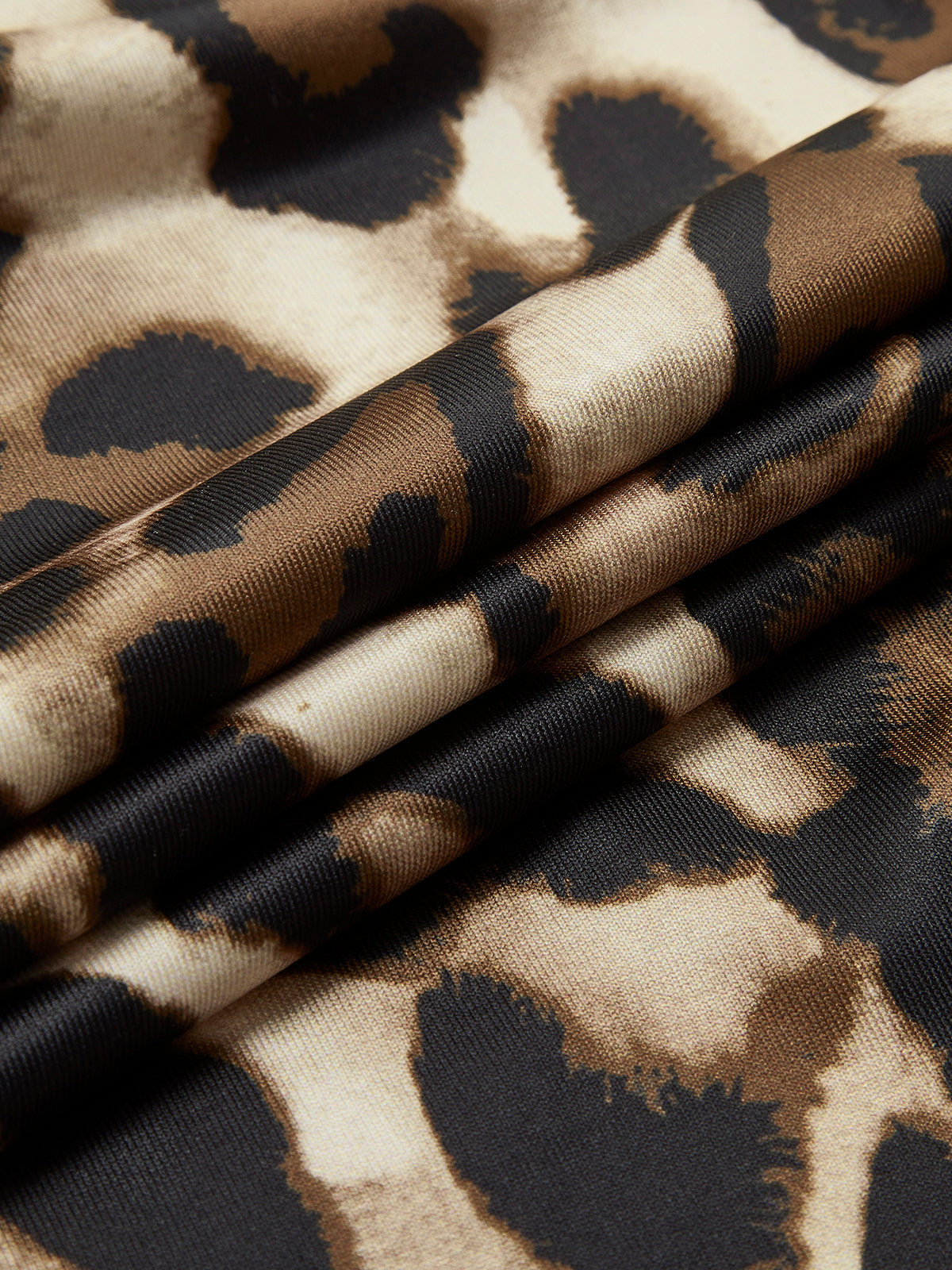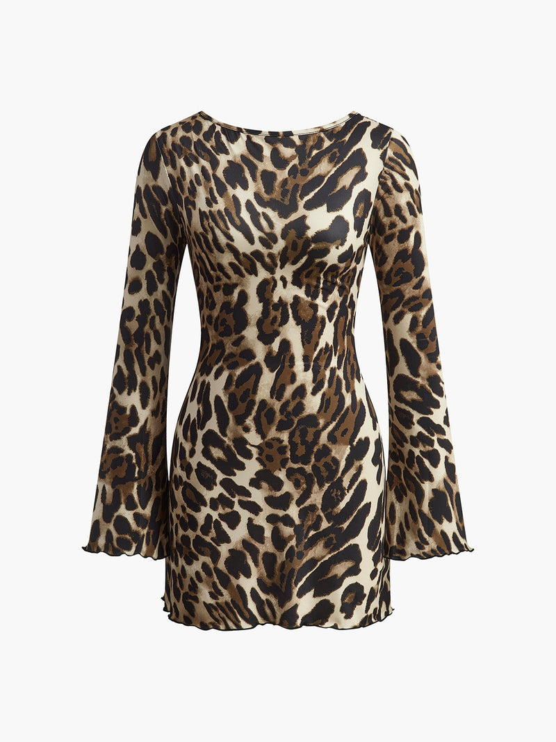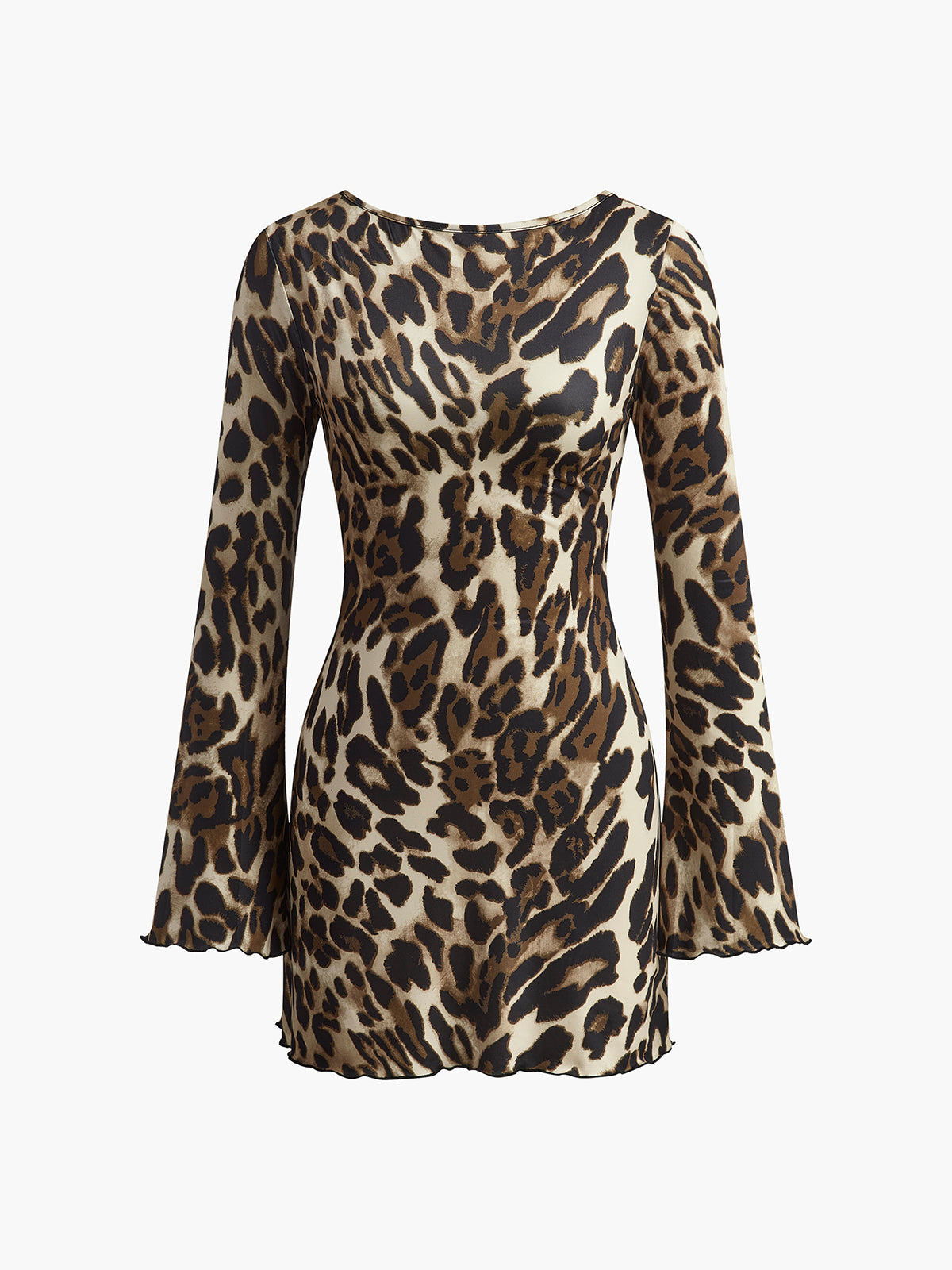 Leopar Baskılı Sırtı Açık Kravatlı Elbise